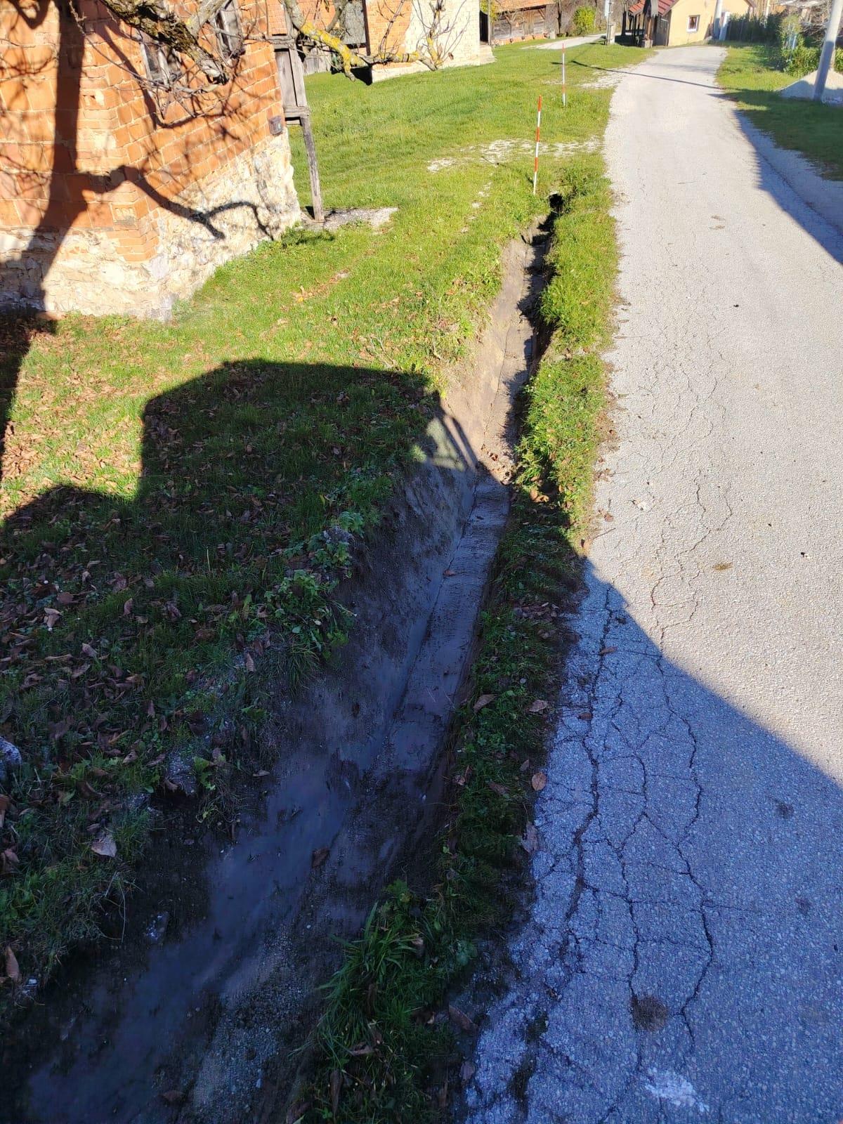 Kako se voda ne bi zadržavala na cesti, radnici Komunalca obavljaju radove na iskopu cestovnih jaraka na cesti Cerovica – Osunja.