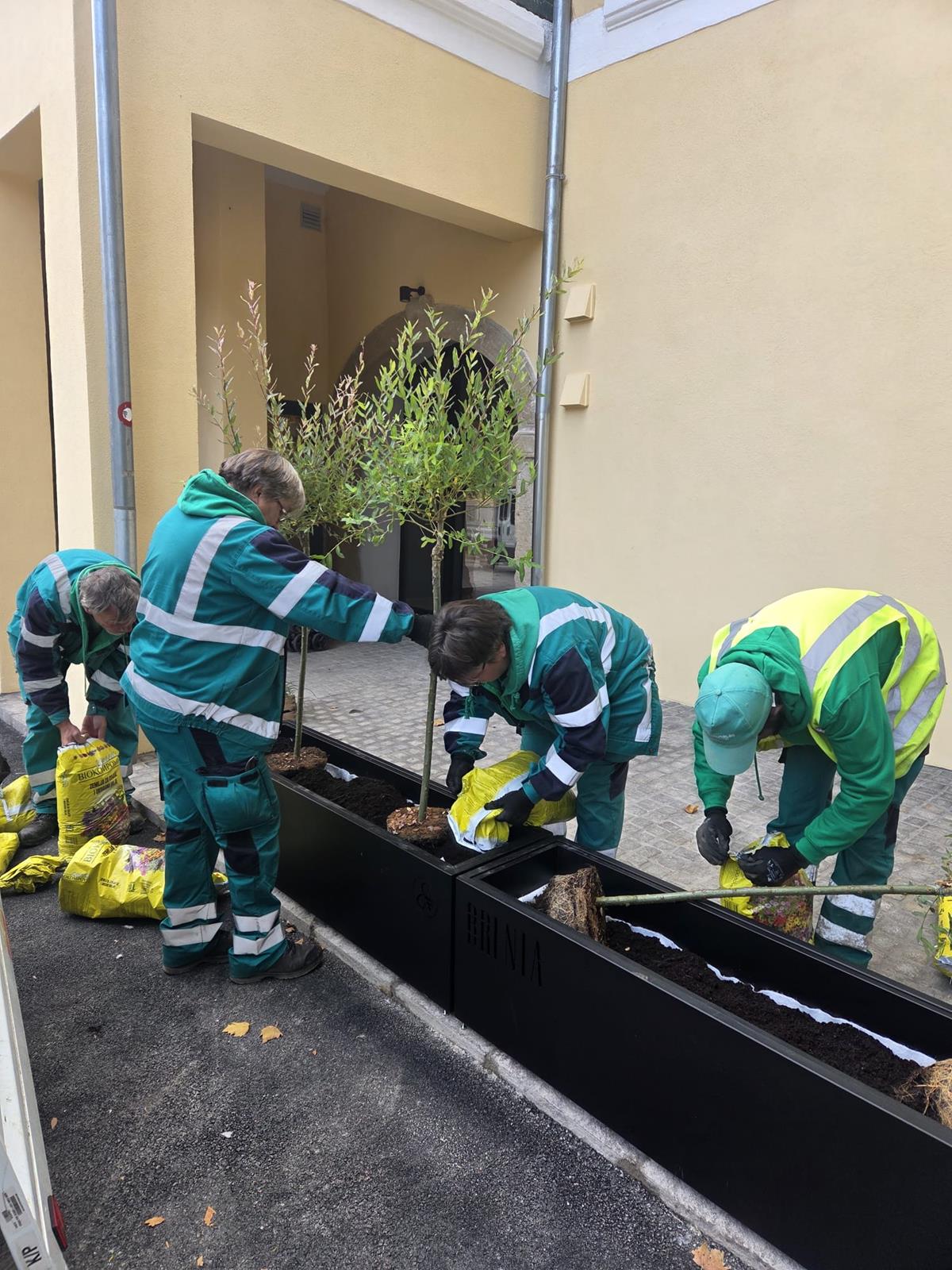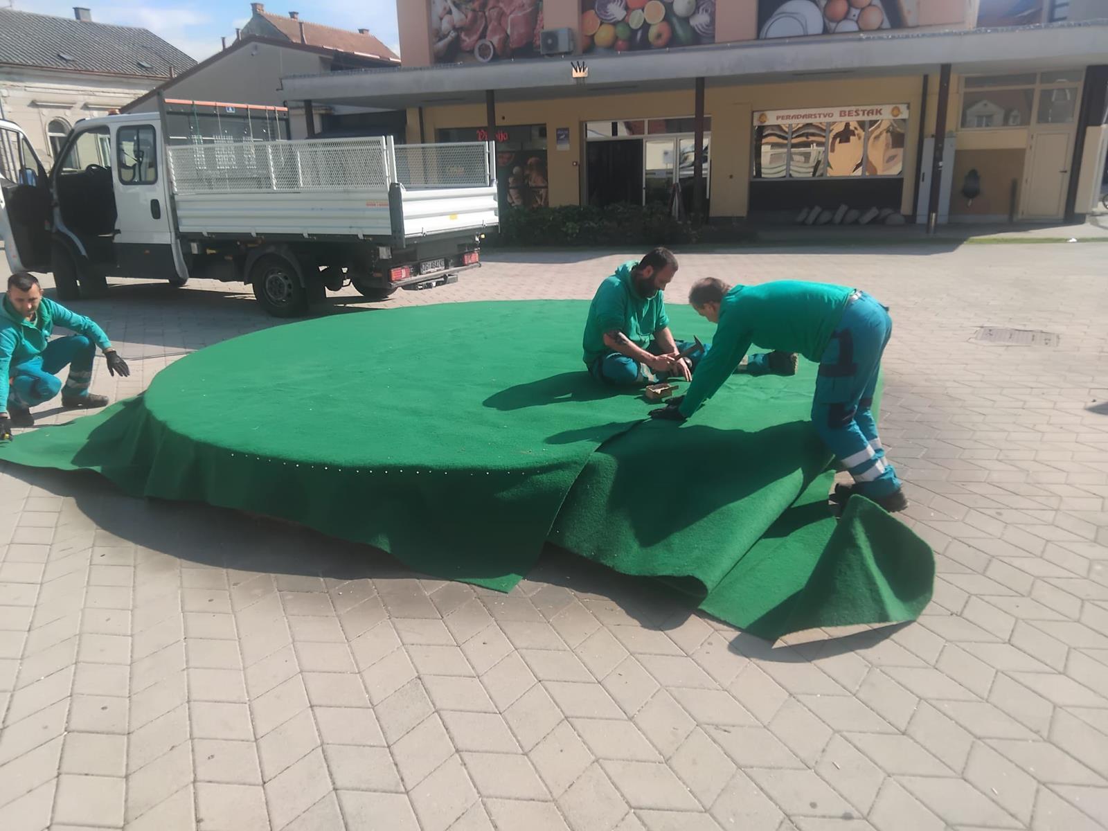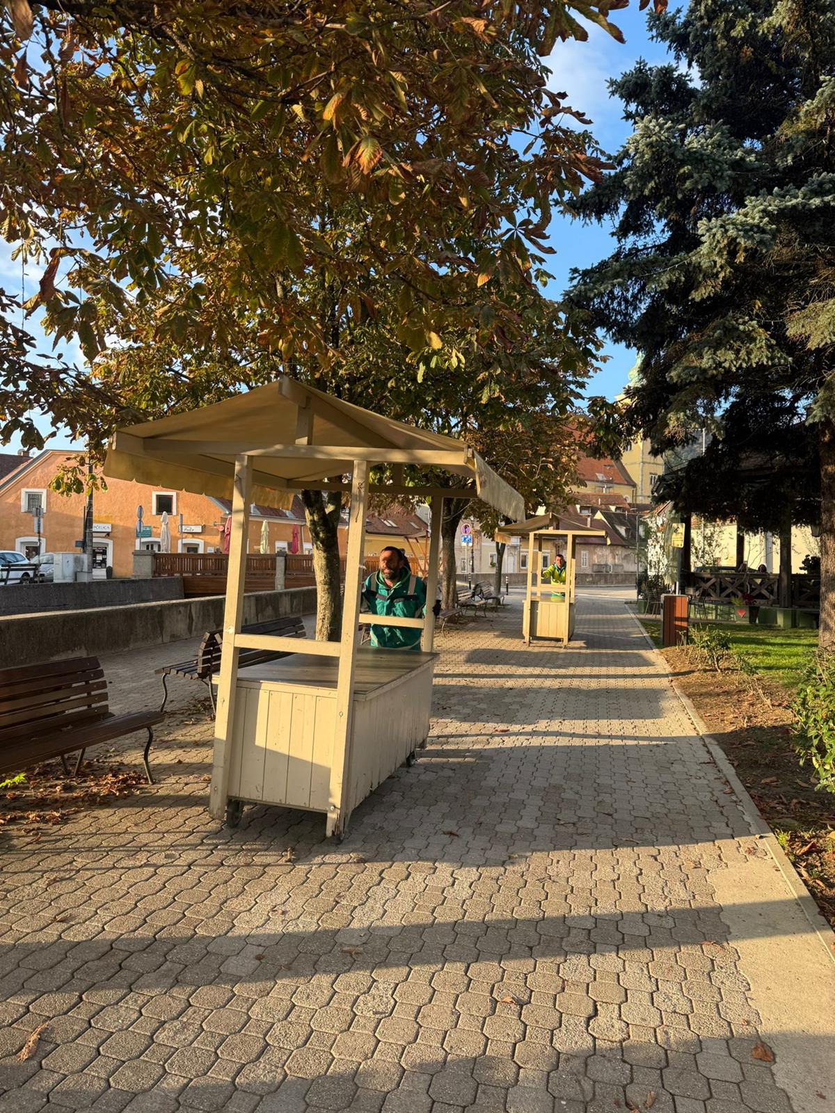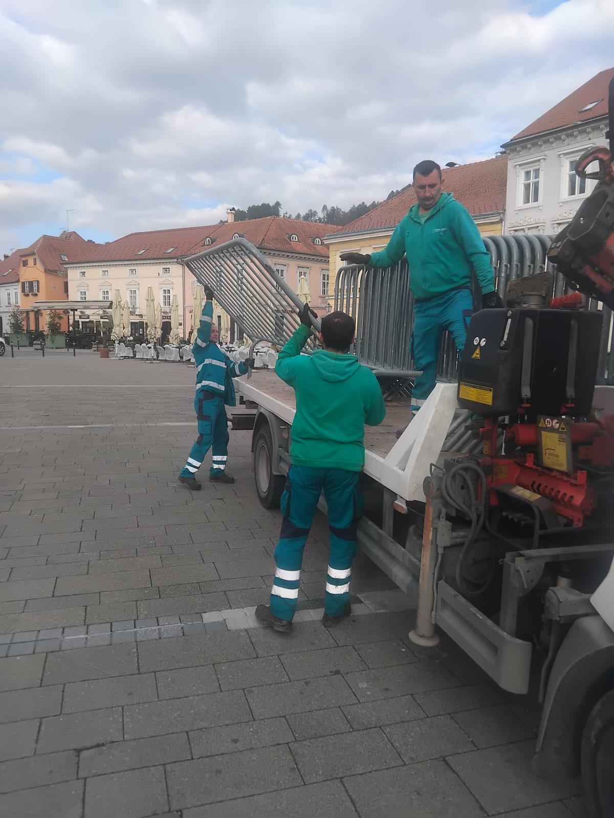 Radnici Komunalca dovoze štandove te stolove i klupe na više lokacija u središtu grada, slažu pozornicu za Festival samoborske kotlovine na Trgu kod pošte, razvoze zaštitne ograde te sade biljke u žardinjere kod novouređenog prostora Brente.